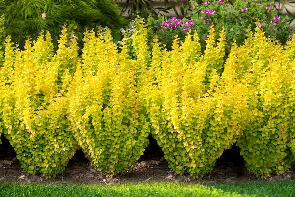 • Формирование изгородей и бордюров: при плотной посадке (расстояние 40–50 см) из этих барбарисов получается очень эффектная, плотная и узкая живая изгородь или бордюр золотистого цвета. Такая изгородь не требует частой формовки по бокам, лишь возможной корректировки высоты.