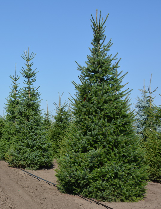 Хвойное дерево с узкопирамидальной формы,  высота до 20 м, диаметр кроны до 4 м. Хвоя очень плотная, толстая, блестящая , двухцветная: темно-зеленая — сверху, светлая снизу. Ежегодный прирост в высоту 35 см, в ширину 15 см. Отличительной особенностью являются шишки: молодые-зеленые, с сиреневатом отливом, свисающие вниз, зрелые — розово-фиолетовые с красным оттенком, который переходит в сине-черный. Местоположение солнце или полутень. Не переносит застоя воды. Зона 4.