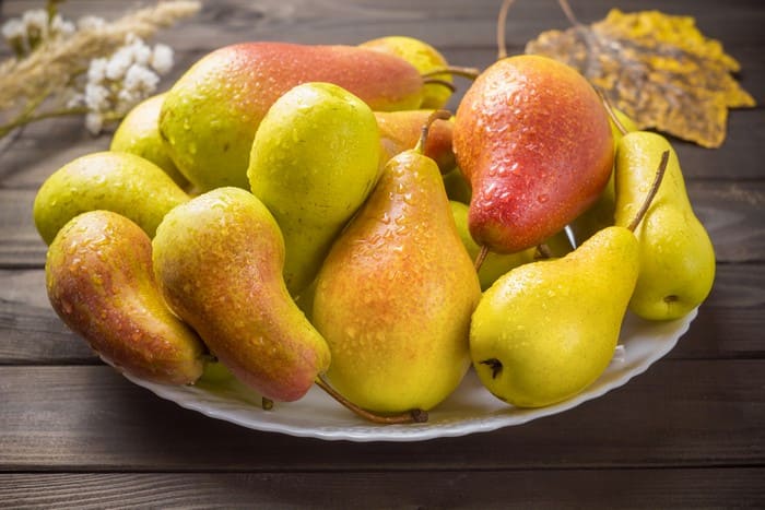 Высота дерева обычно достигает 5 метров, его крона густая и имеет овальную форму. Ветки достаточно редкие, отходят от штамба под углом в 90 градусов. Лист ярко зеленый, продолговатый по форме, кончик острый, черешок длинный. Побег бурого цвета, также имеет удлинённую форму, почки прислоненные. Сами груши не очень крупные, весовая категория варьируется от 100 до 120 граммов. Созревшая груша имеет темно-желтый цвет, румяный бок. Мякоть достаточно плотная, цвет у неё кремовый. Плод маслянистый и сочный. Плодоножка длинная, толстая. Именно этот сорт прекрасно сохраняется после сбора. Сорт известен своим необыкновенно сладким вкусом с небольшой кислинкой, запах у неё достаточно приятный, но не резкий. Плоды содержат моносахара, органические кислоты, витамины. Груша осеннего срока созревания, плоды можно собирать под конец августа – во второй половине сентября.