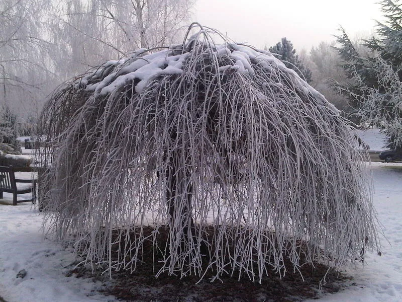 Декоративный мужской клон плакучей ивы с компактной кроной. Высота штамба 1.2–1.8 м, диаметр кроны 1–1.5 м, при свободном росте до 2 м. Ежегодный прирост – 20–30 см. Ветви плакучие, малоподвижные, зеленовато-бурые, формируют шатровидную крону. Листья темно-зеленые, блестящие сверху, снизу с серо-белым опушением, осенью желтеют. Цветение в начале мая, до распускания листьев, длится 7–12 дней. Золотистые сережки обильные, очень декоративные, придают нарядный вид. Плодов не образует. Идеальна для солитерных посадок, украшения небольших садов, водоемов или альпийских горок.